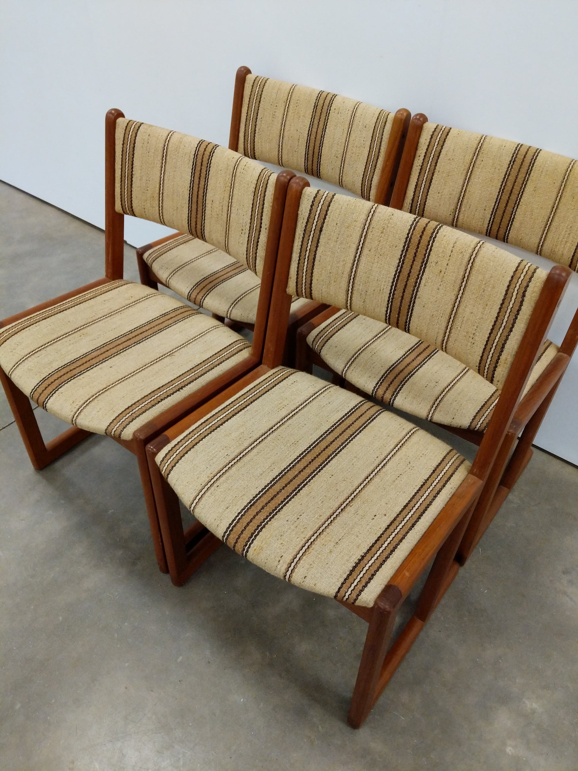 Set of 4 authentic vintage mid century Danish / Scandinavian Modern dining chairs.