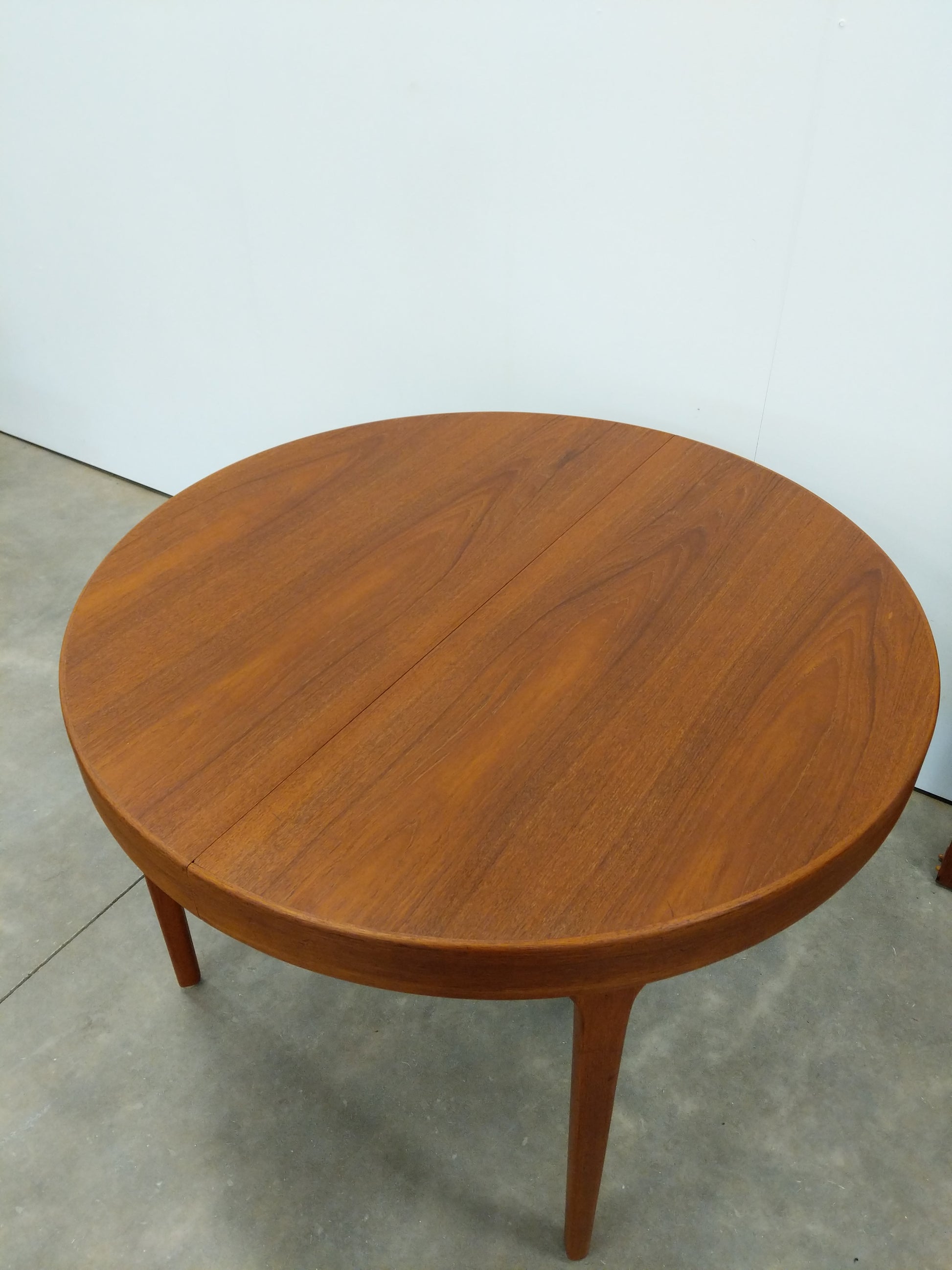 Authentic vintage mid century Danish / Scandinavian Modern teak extendable dining table with 2 leaves.