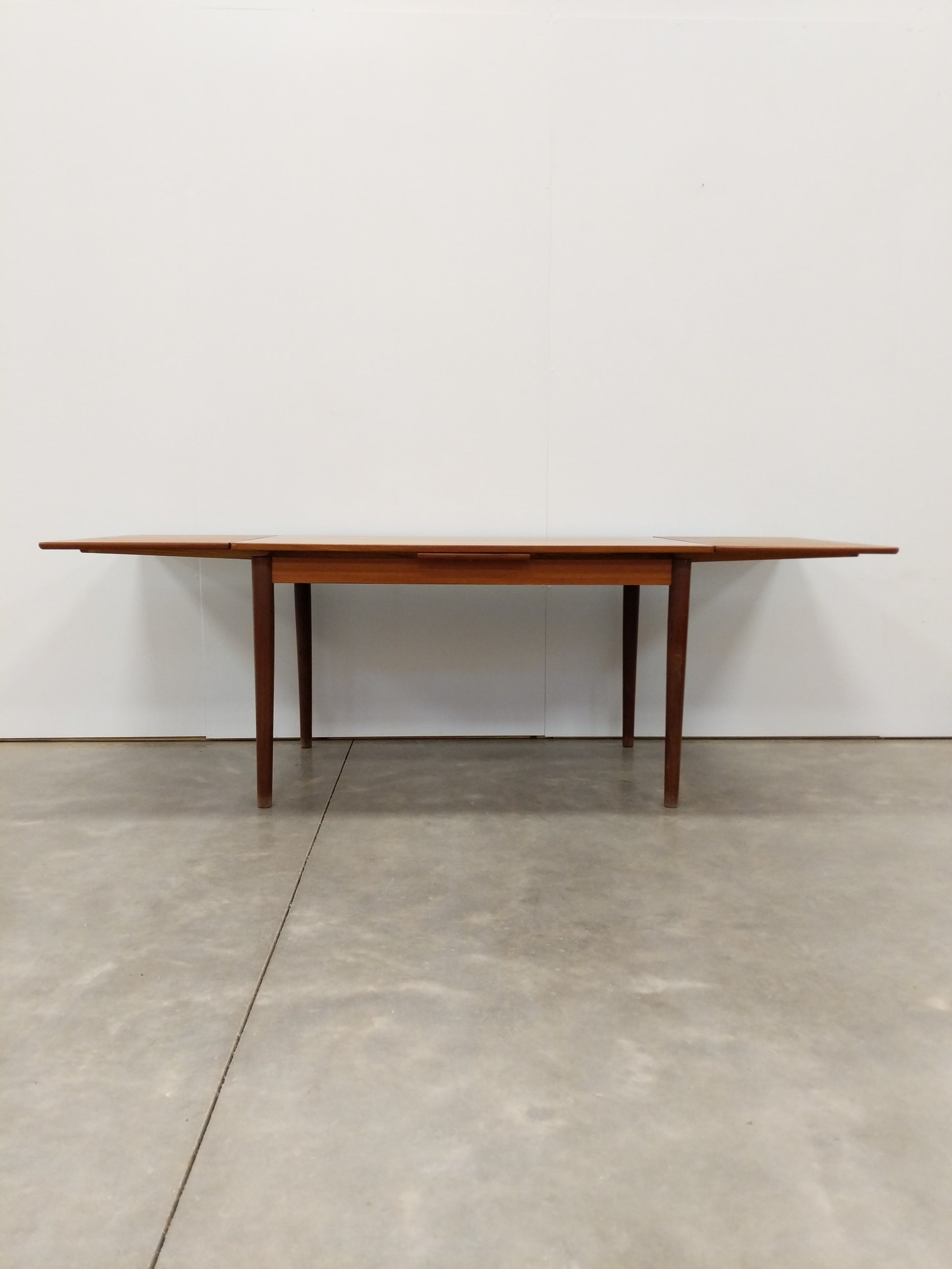 Authentic vintage mid century Danish / Scandinavian Modern teak extendable dining table with 2 built-in Dutch-style draw leaves.