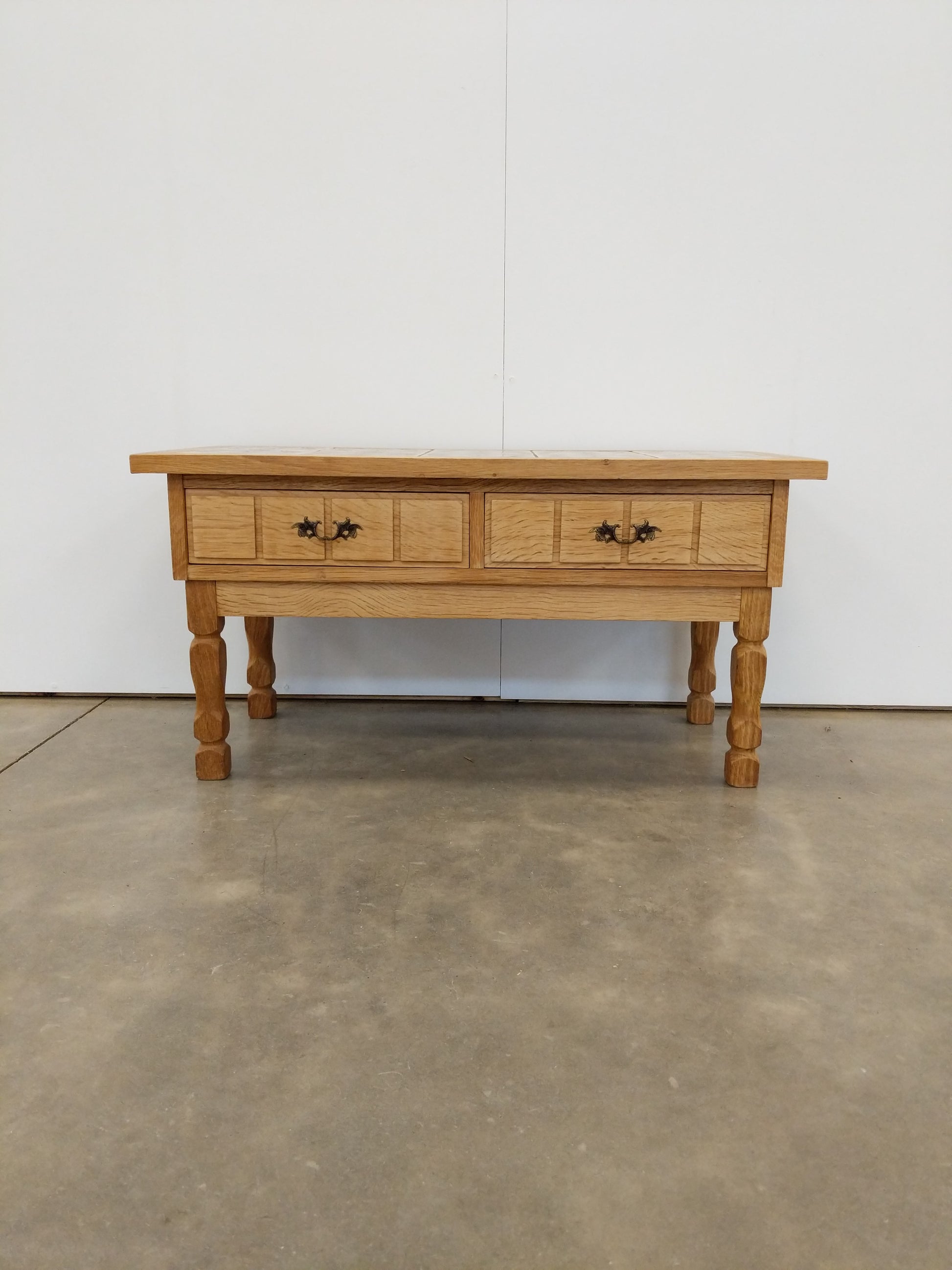 Vintage Danish Oak and Tile Entry Table