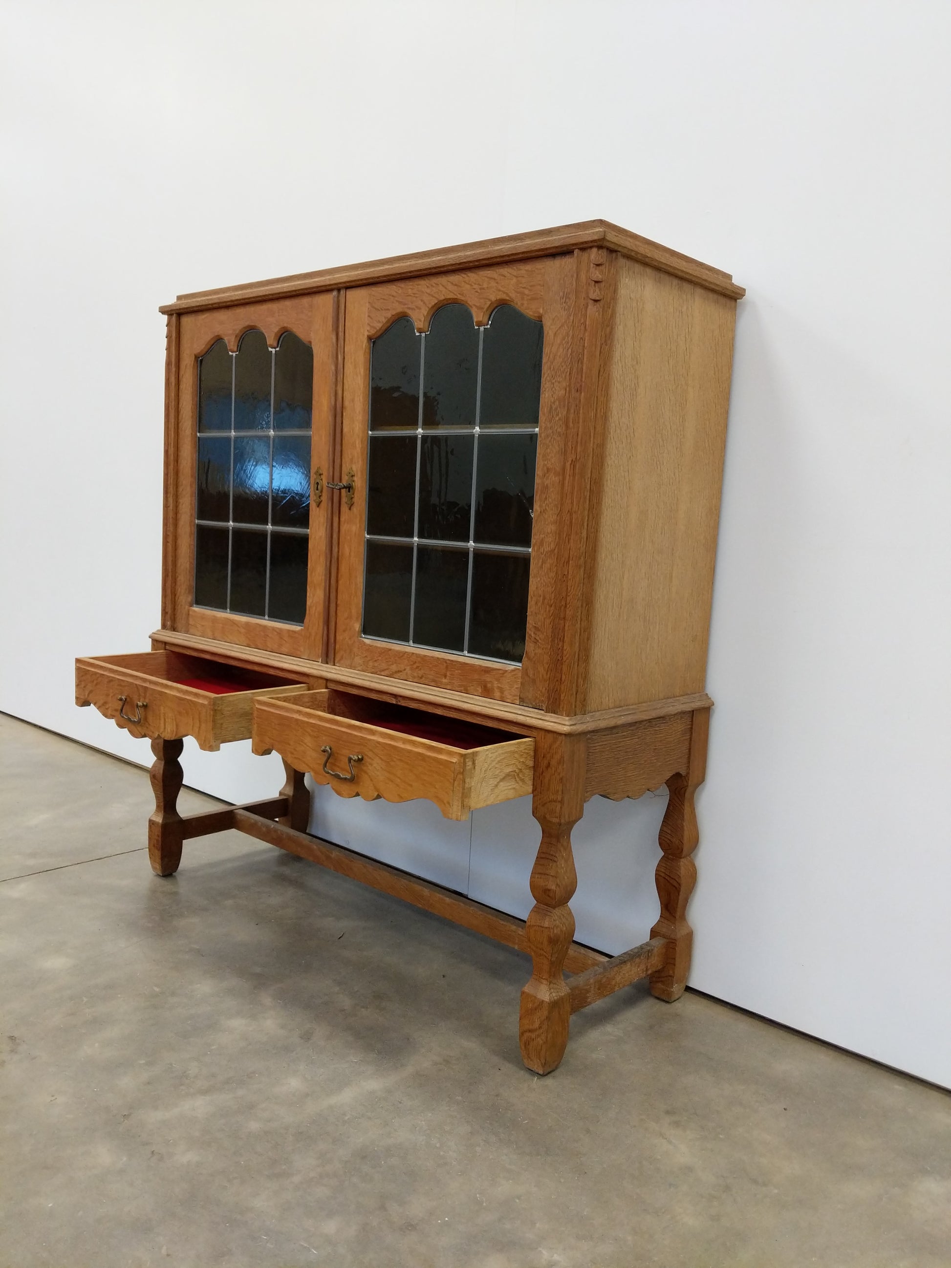 Authentic vintage Danish / Scandinavian Modern oak cabinet / sideboard with stained glass doors.
