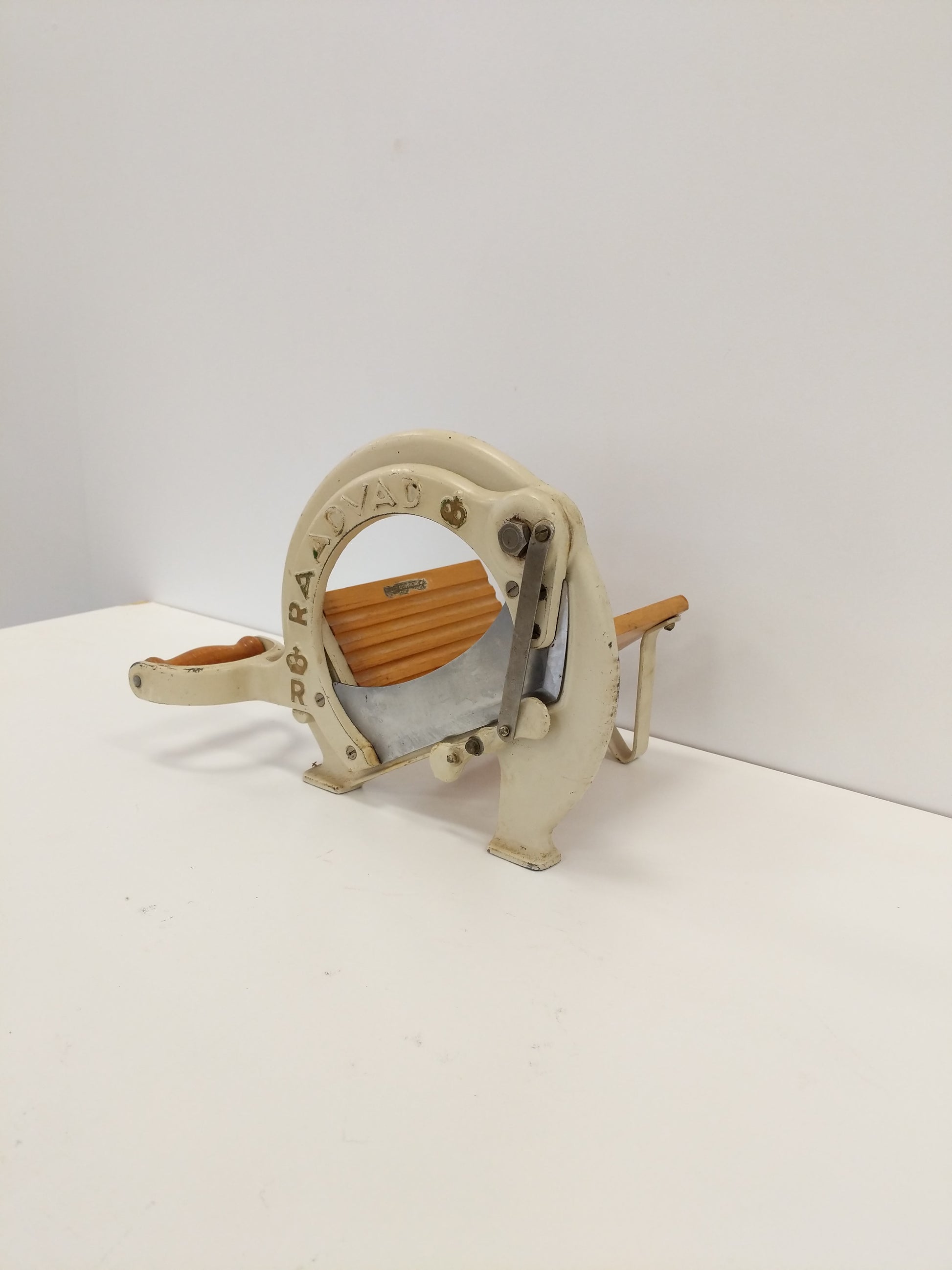 Authentic vintage Danish bread slicer / guillotine in cream color.