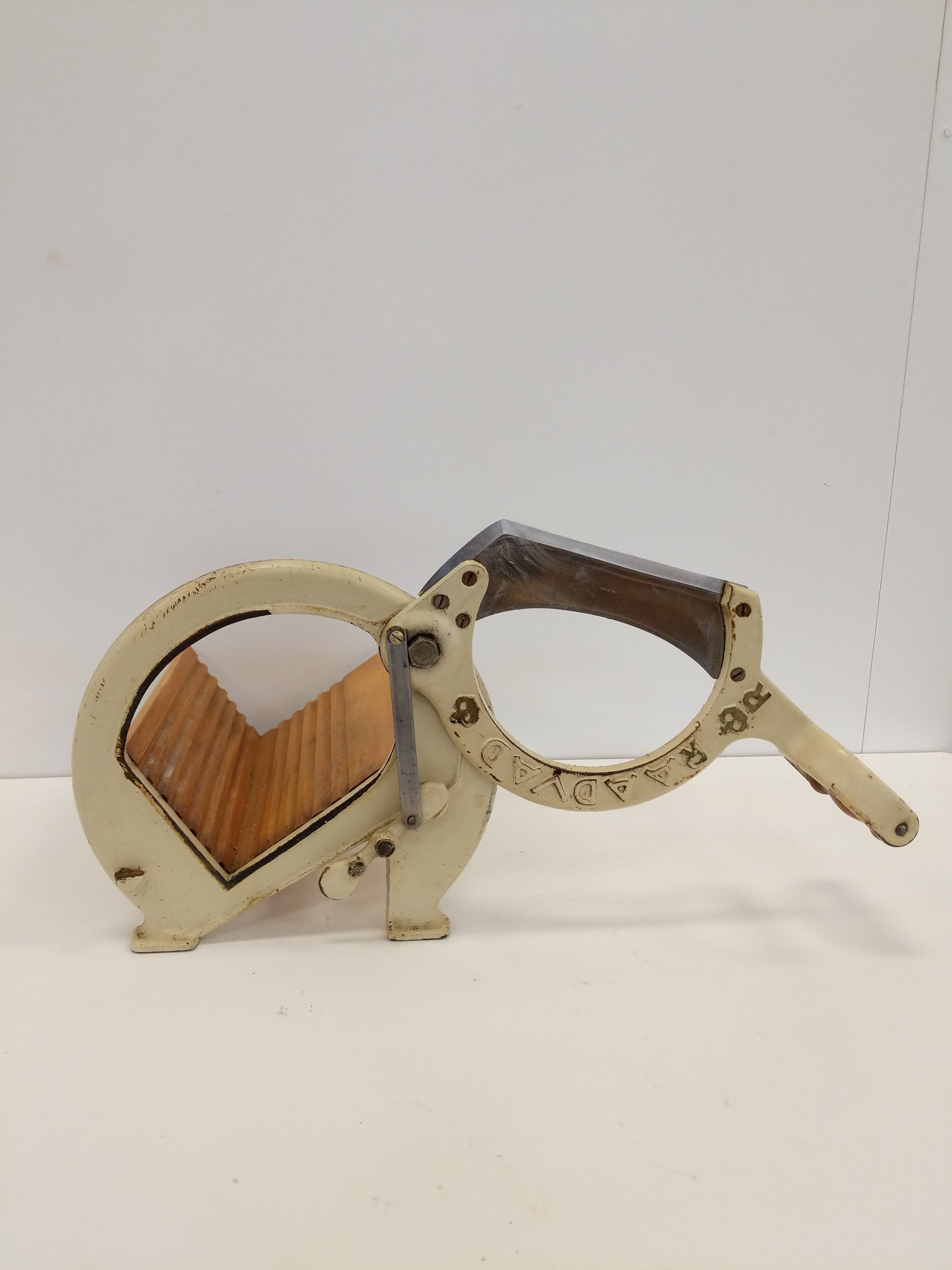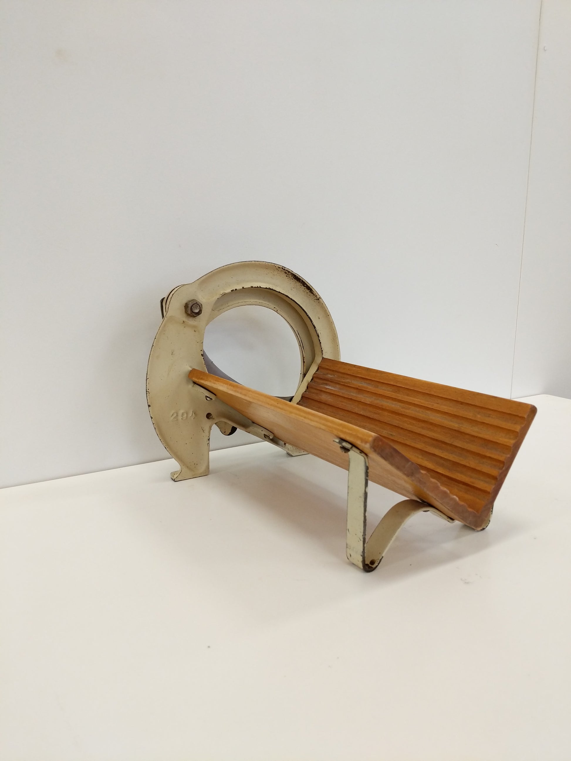 Authentic vintage Danish bread slicer / guillotine in cream color.