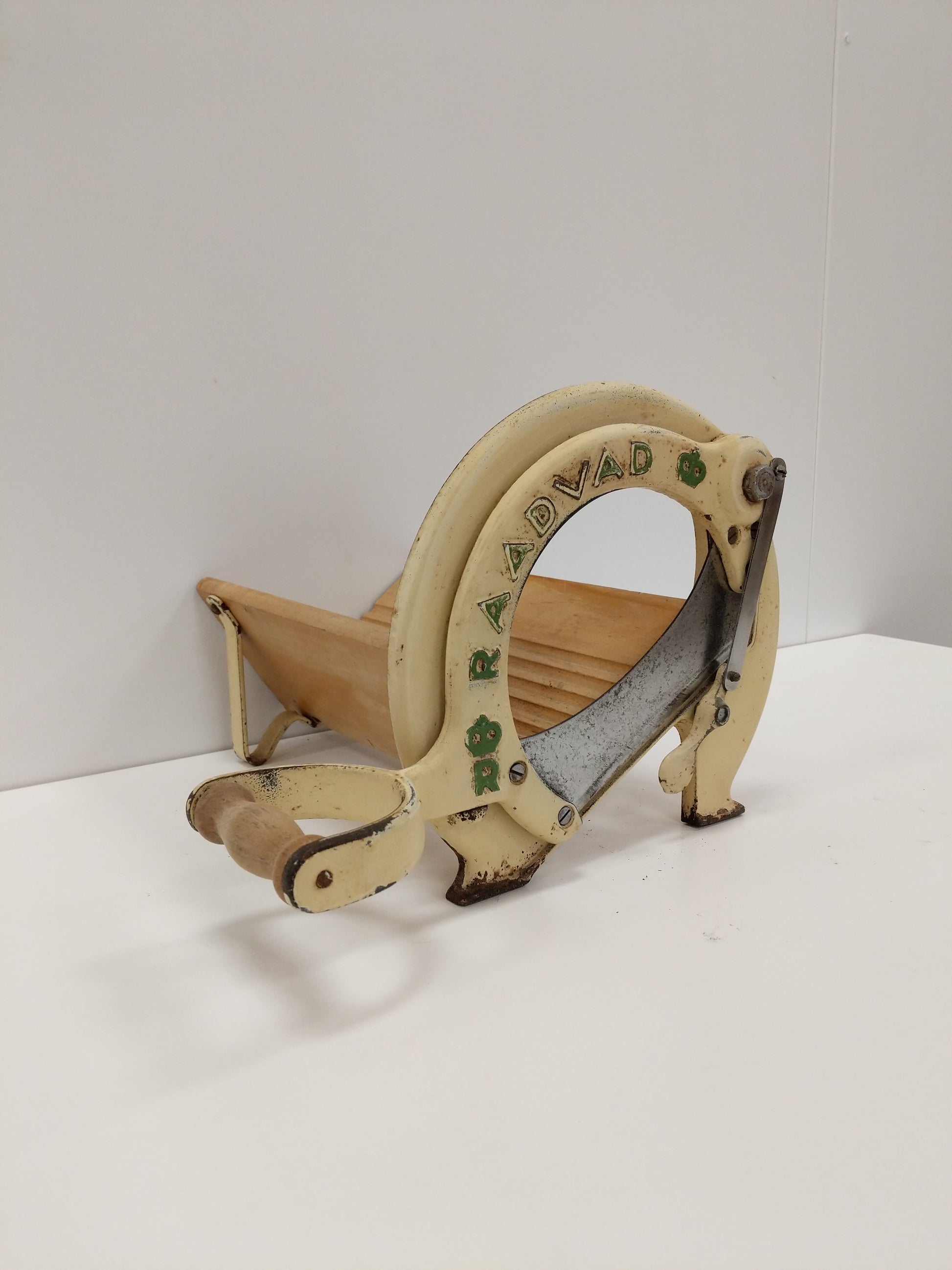 Authentic vintage Danish bread slicer / guillotine in cream color.