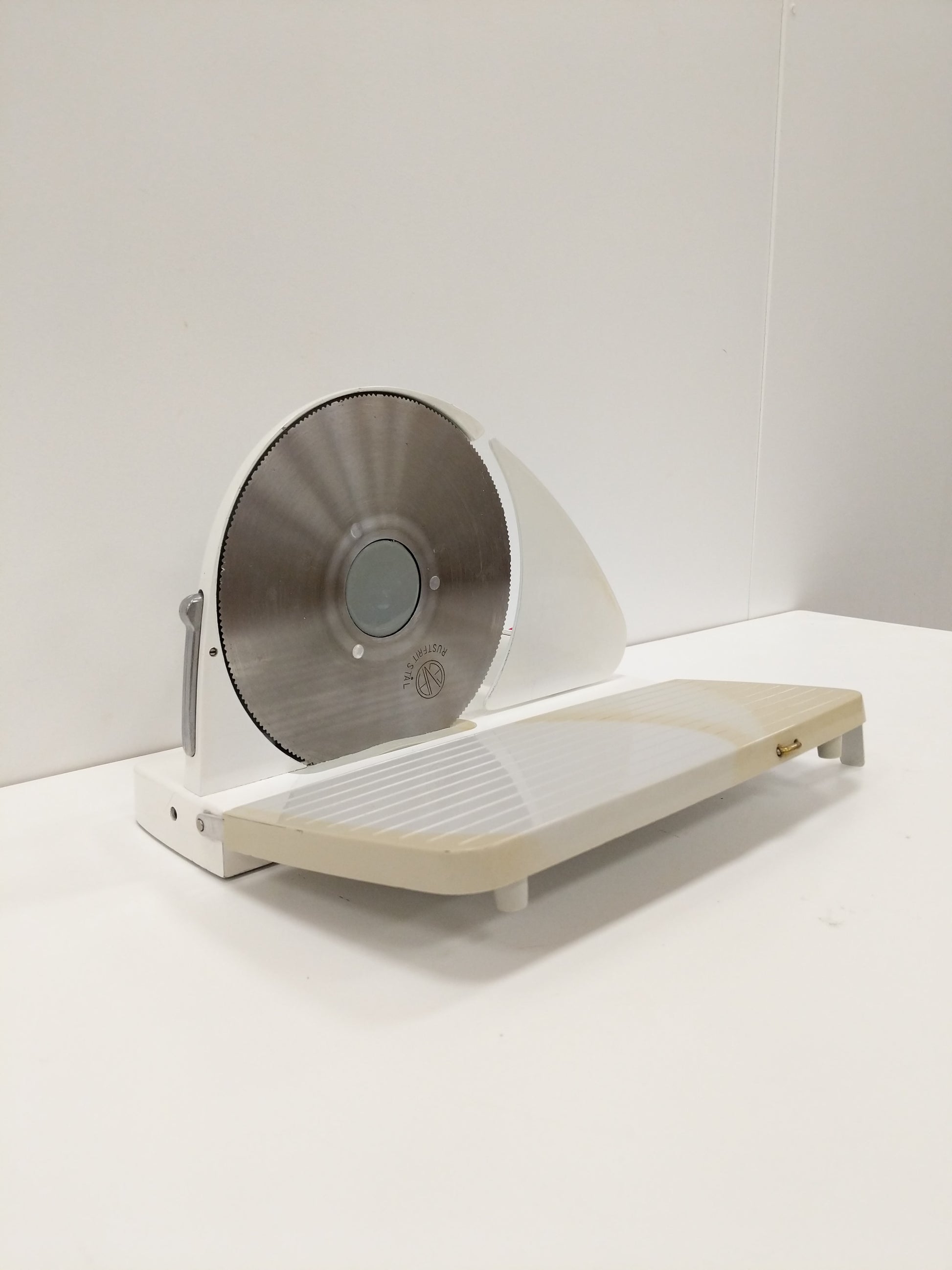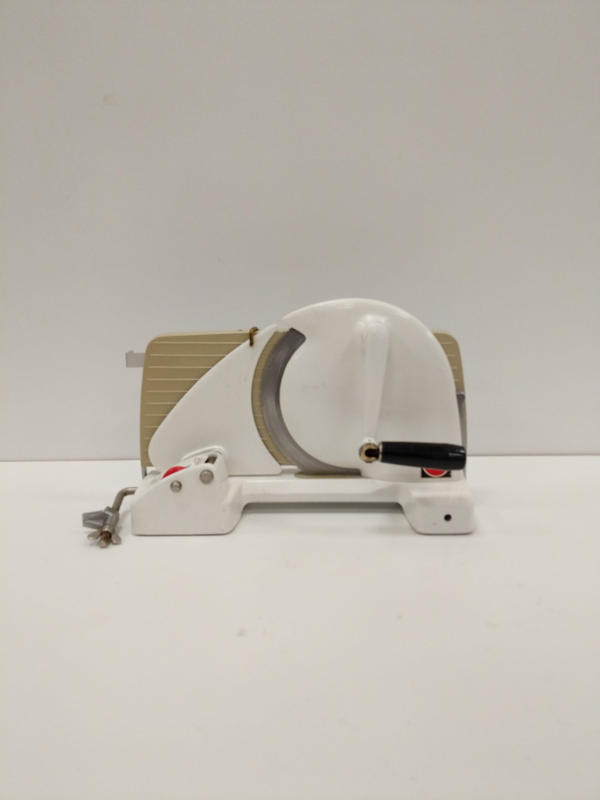 Authentic vintage Danish Eva bread / cheese / meat slicer in white.