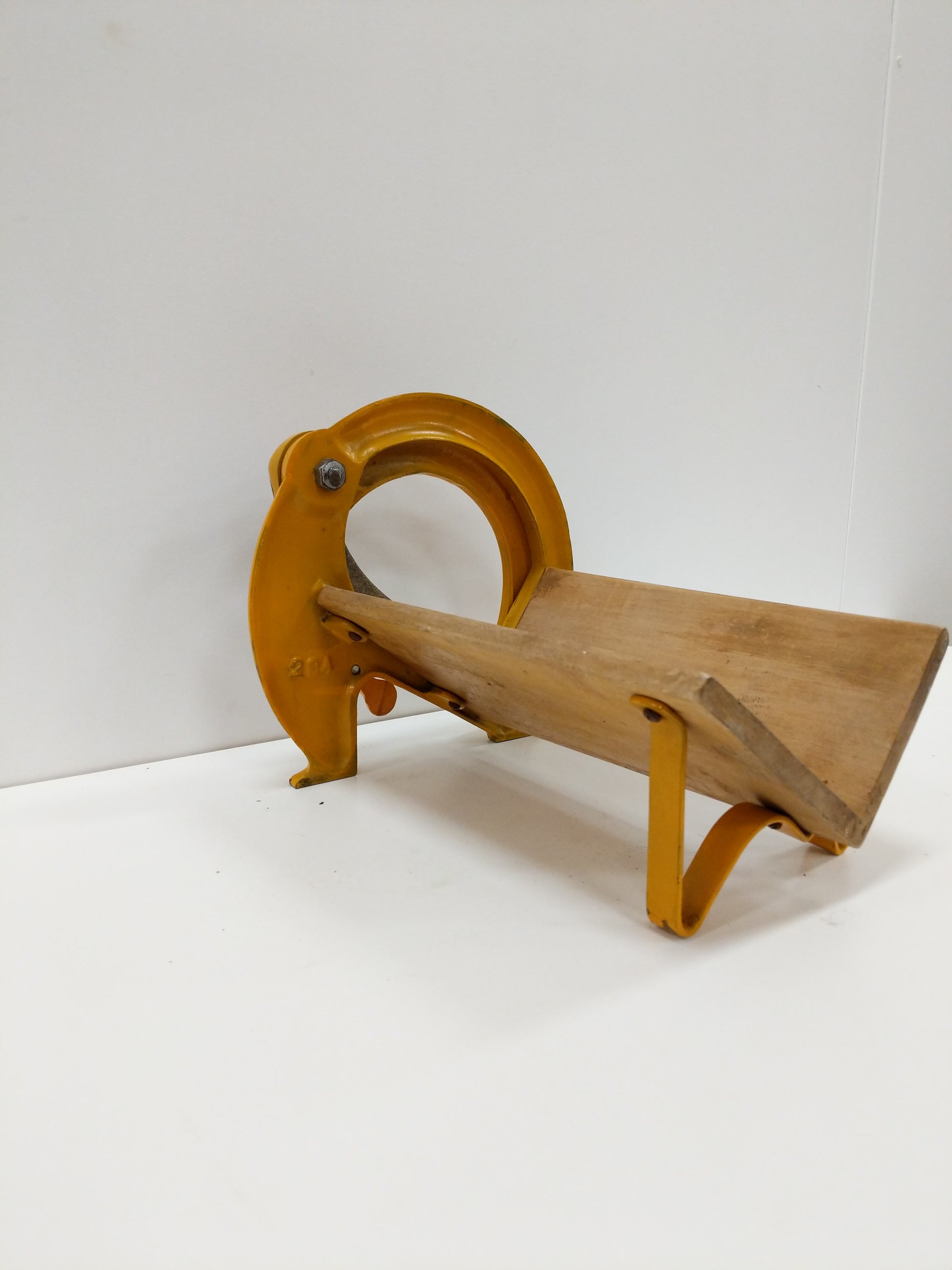 Authentic vintage Danish bread slicer / guillotine in yellow-orange.