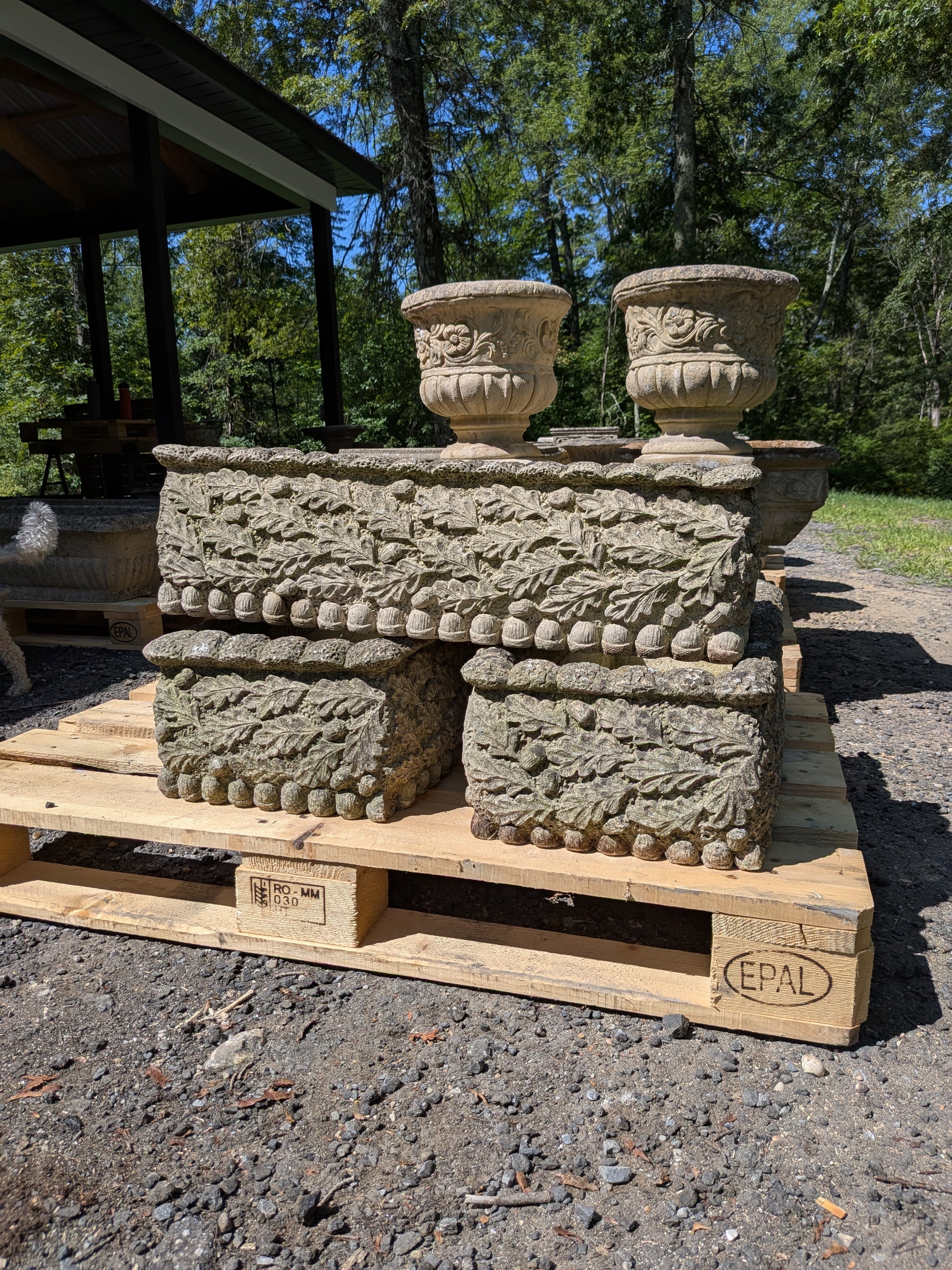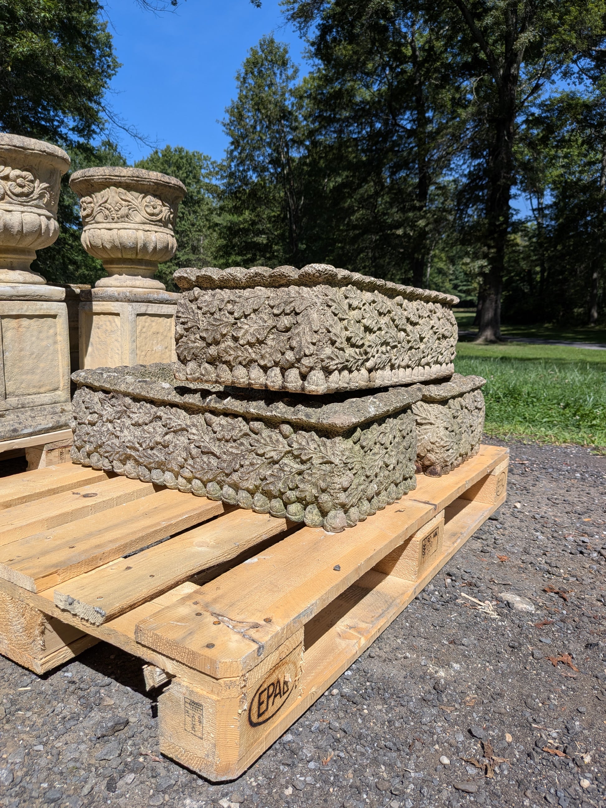 Set of 3 British Cast Stone Trough Planters / Jardinieres