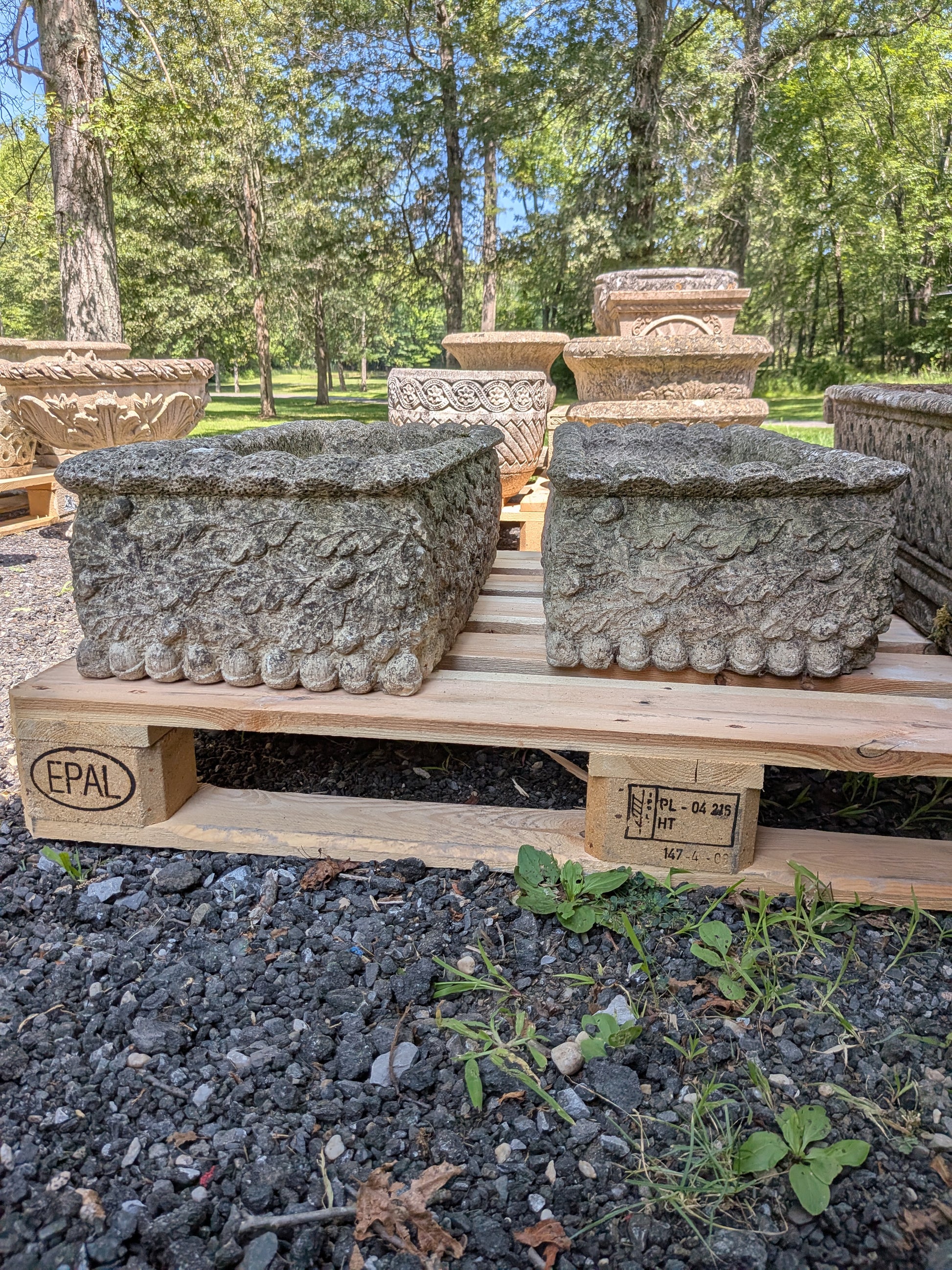 Pair of British Cast Stone Trough Planters / Jardinieres