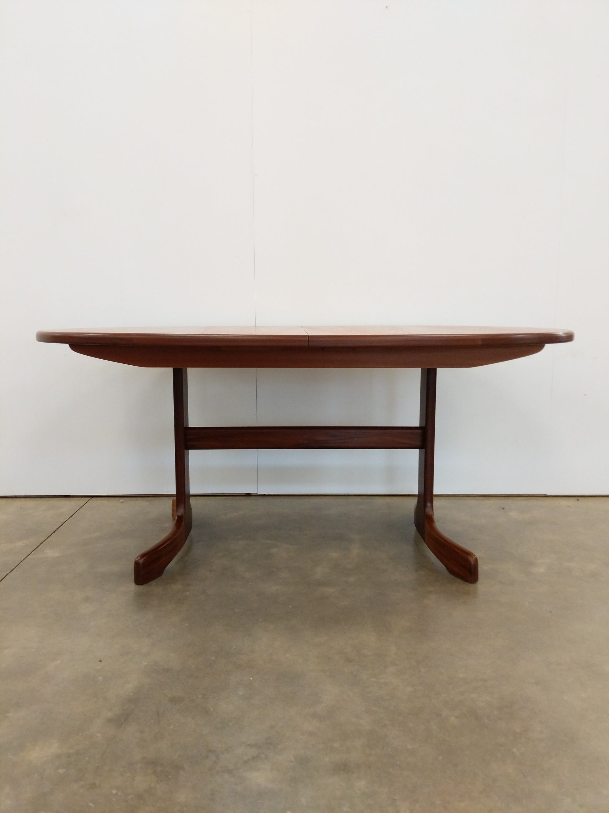 Authentic vintage mid century modern teak extendable dining table with 1 built-in leaf.