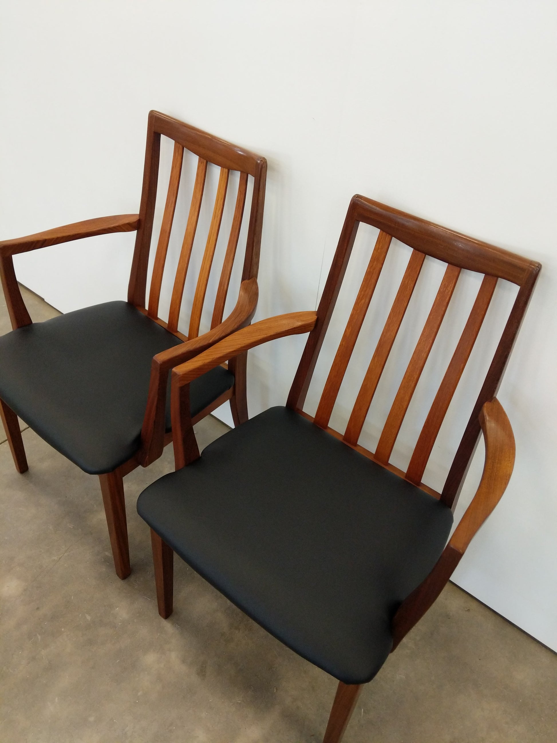 This set is in excellent condition with brand new vegan leather upholstery and few signs of age-related wear (see photos).