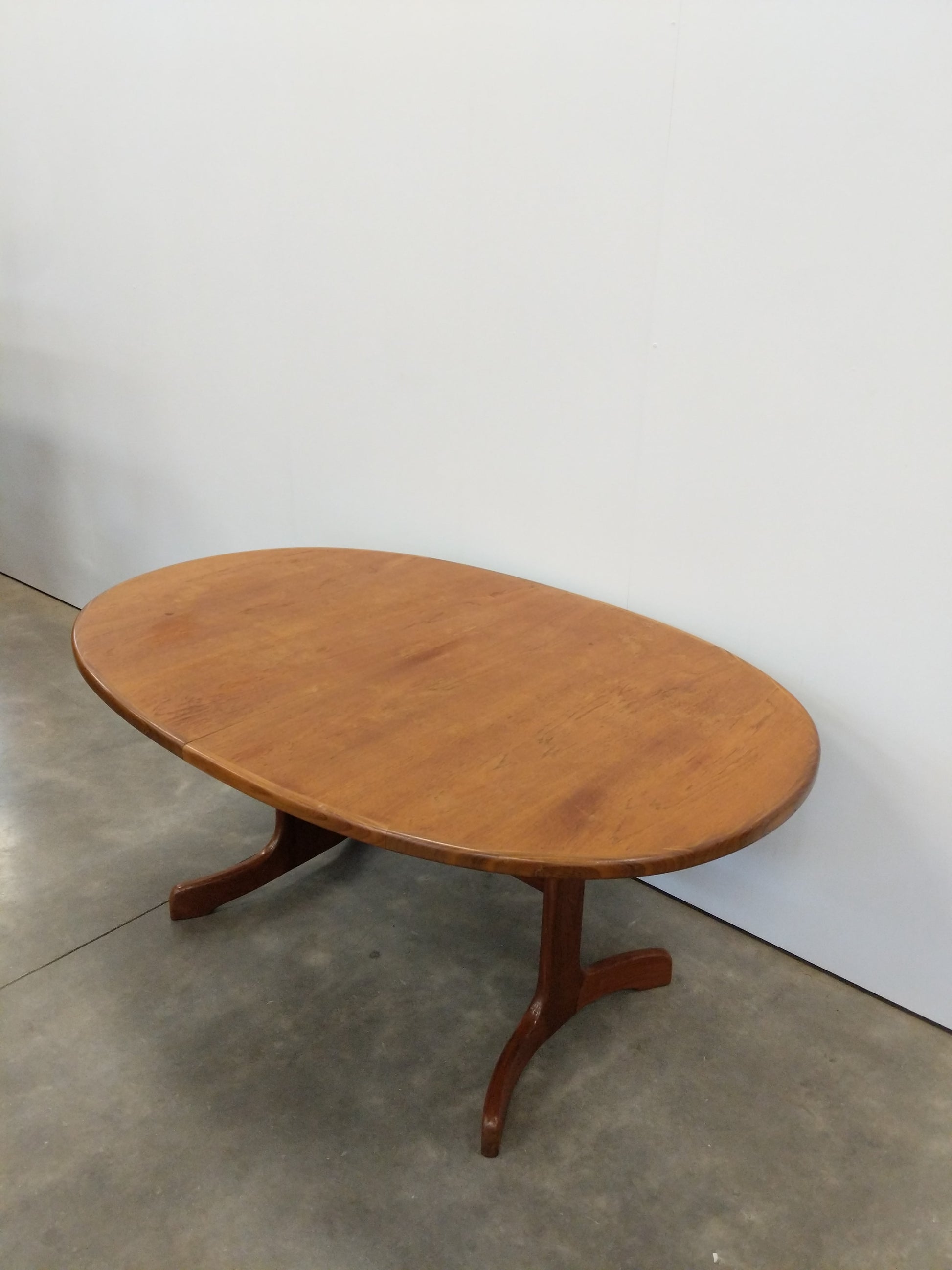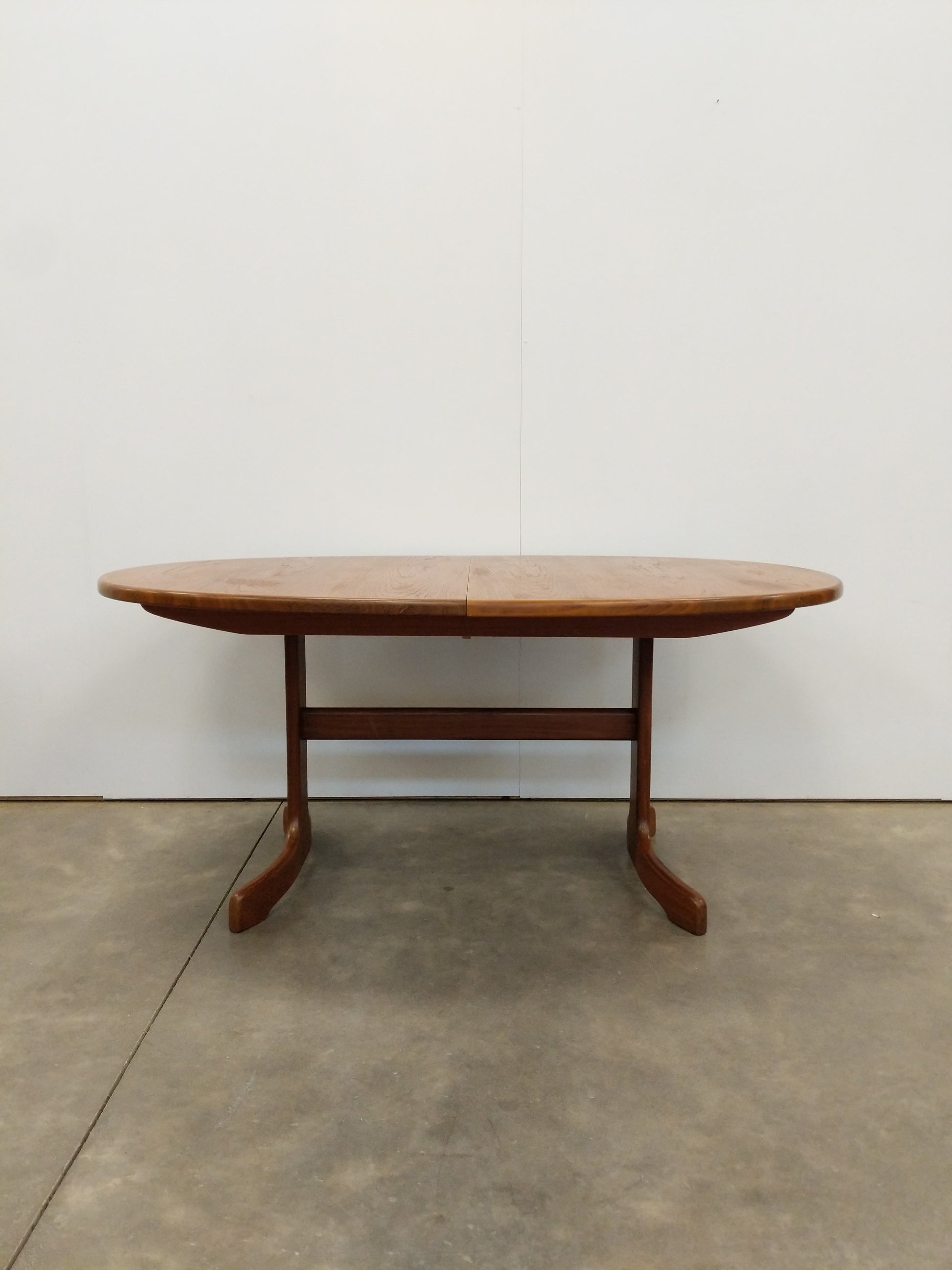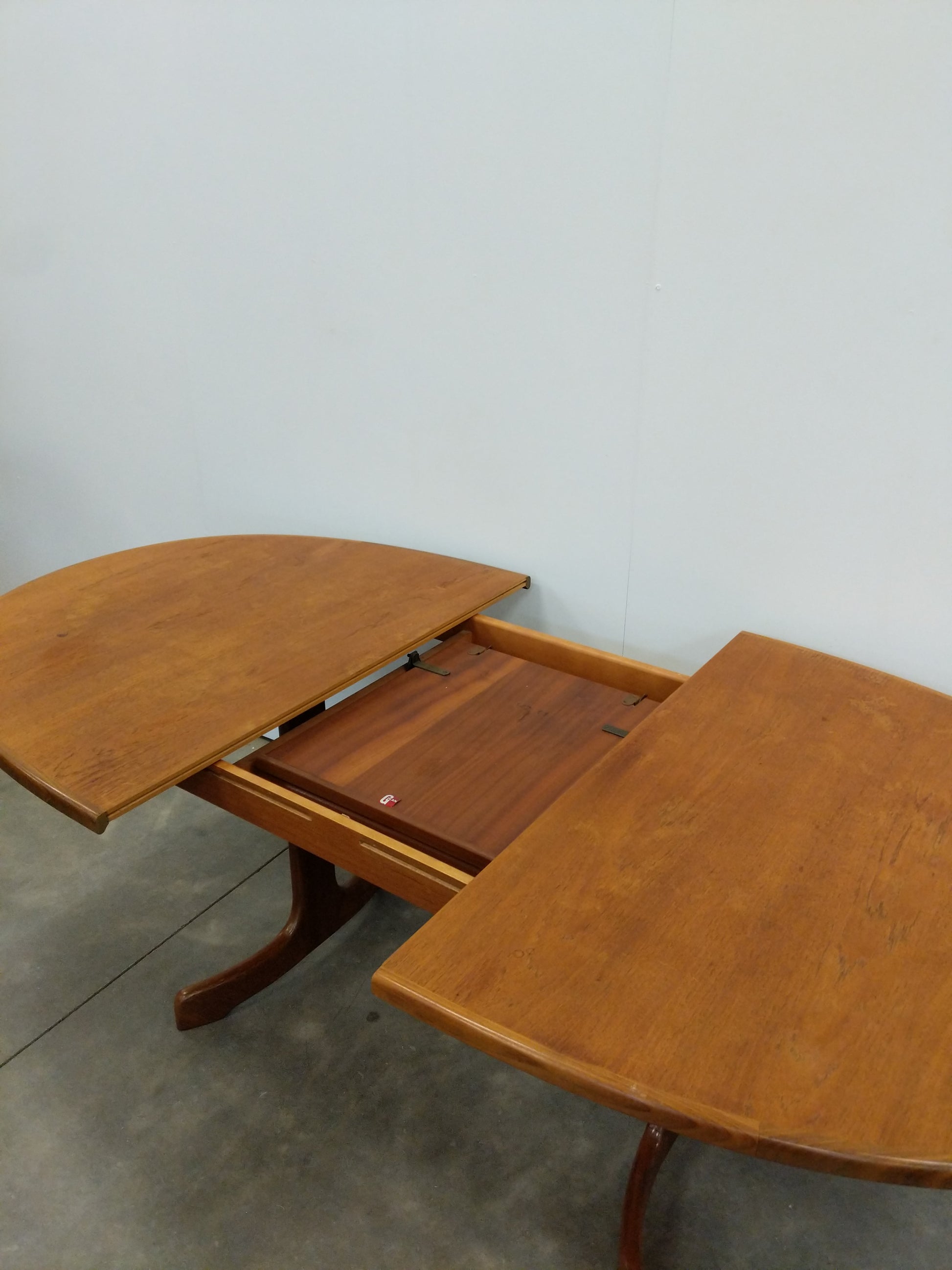Authentic vintage mid century modern teak extendable dining table with 1 built-in leaf.