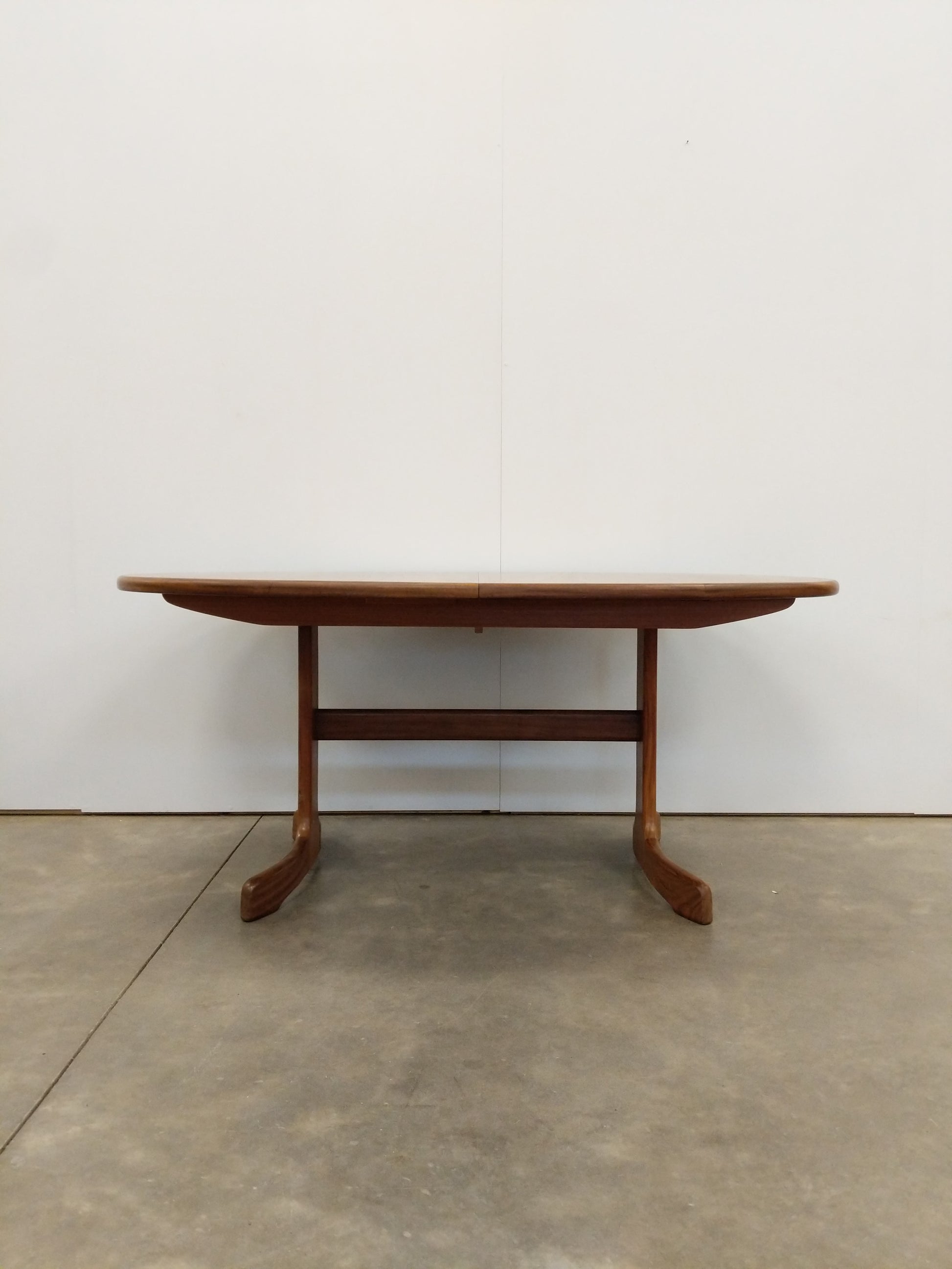 Authentic vintage mid century modern teak extendable dining table with 1 built-in leaf.